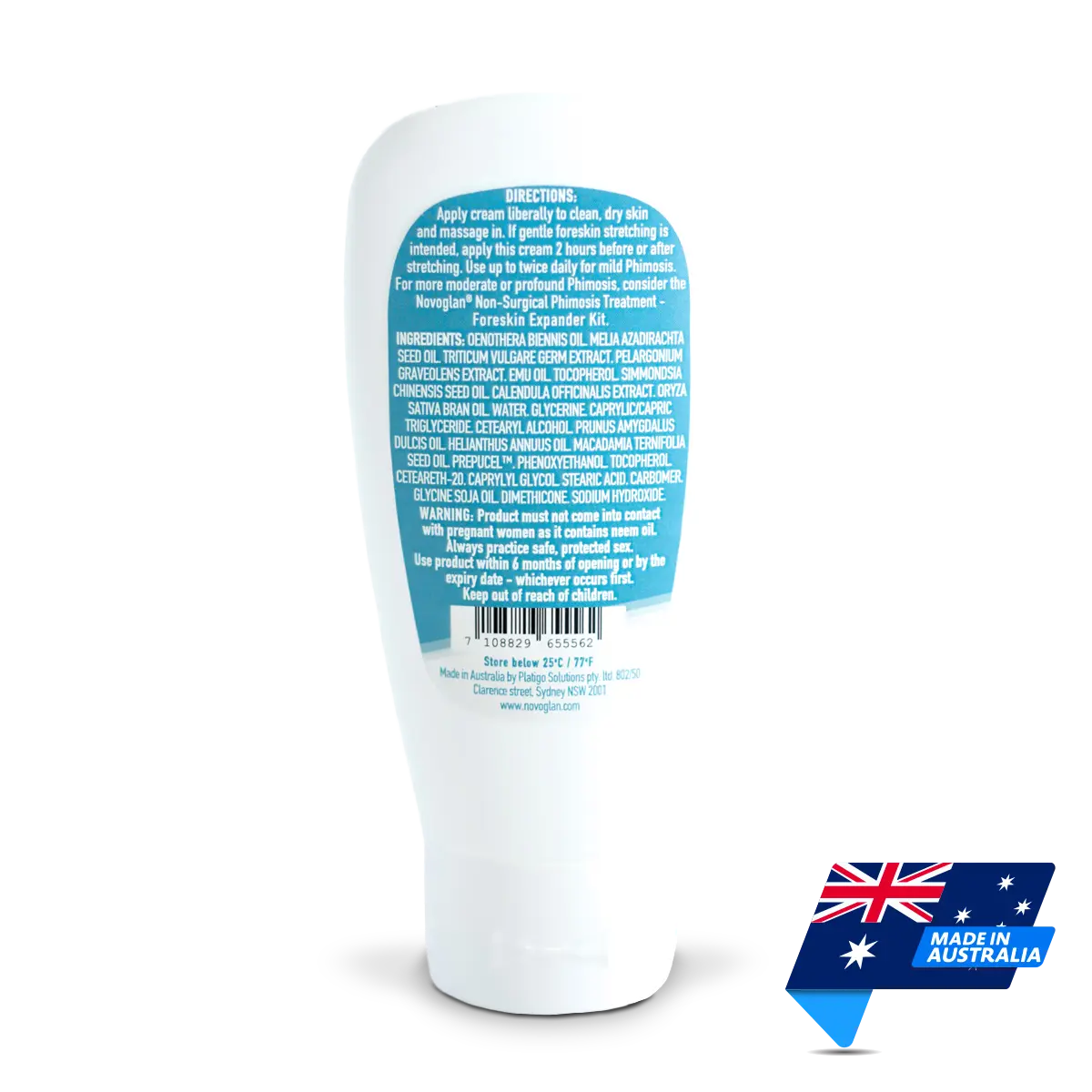 Novoglan® Foreskin Conditioning Cream is scientifically formulated to help with foreskin elasticity. It’s enriched with natural ingredients such as organic neem seed oil (traditionally used in the management of sensitive skin due to its anti-inflammatory and antioxidant properties), evening primrose oil, lavender, emu oil, rose geranium, jojoba oil, wheatgerm oil, calendula, rice bran oil, almond oil, and vitamin E – an excellent combination to condition and soften the foreskin.